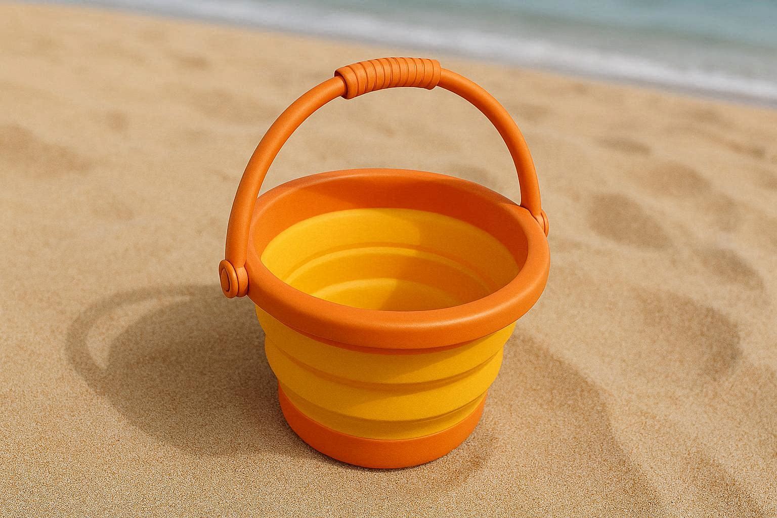 Round Folding Bucket For Kids Beach Play And Sand Castle Building With Flexible Easy Grip Design